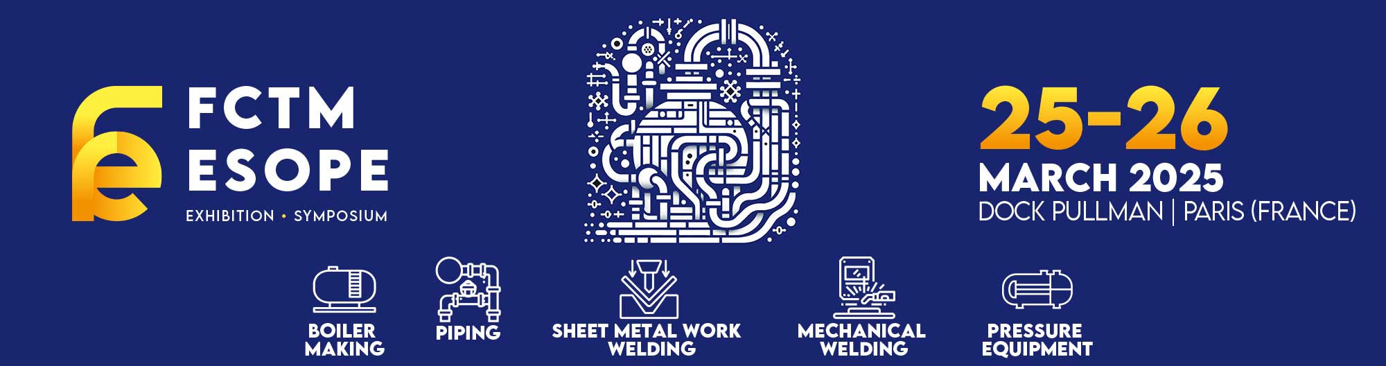 Reserve your booth now for the Exhibition and Symposium dedicated to Boilermaking, ESP, Piping and Welding! Meet customers from Chemistry, Petrochemicals, Nuclear, Oil & Gas... Be present at the largest gathering dedicated to boilermaking, piping and welding, meet your market at FCTM ESOPE from March 25 to 26, 2025 at Paris, Dock Pullman!